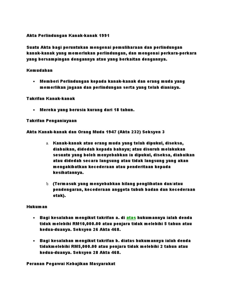 Akta Pelindungan Kanak Kanak 1991 Pdf